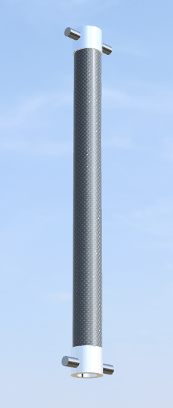 Machined from 6061 Aluminum, these lugs are designed to allow around 10° of rotation around the pin axis on each end, while transferring compressive load and preventing horizontal translation. I used both the CNC mill and lathe to produce these lugs with a free running fit tolerance between the lug OD and the tube ID to allow adequate space for epoxy. After sanding the lower 1″ of each lug with 100 grit sandpaper for several minutes, the surface was ready for adhesive (see photo on the left).