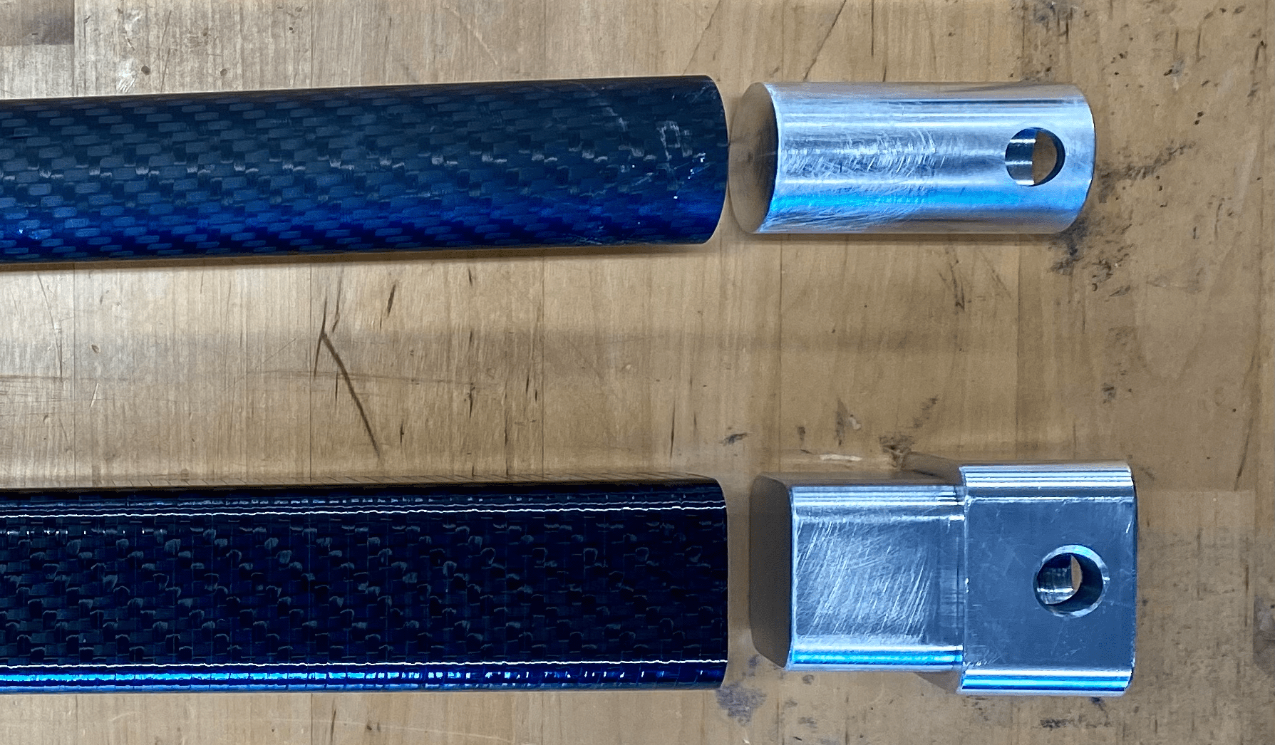 I used a J-B Weld Adhesive purchased from McMaster Carr with good composite material compatibility to adhere the aluminum lugs to the tubes. I allowed the epoxy to cure for 40 hours before testing.