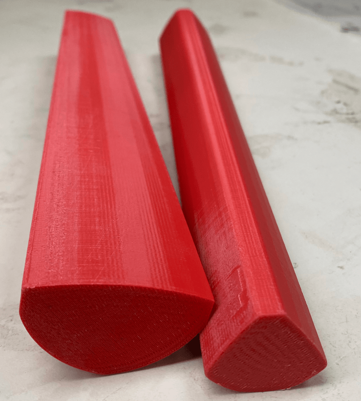 This roll-wrap manufacturing method requires that a solid mold of the desired geometry over which the carbon fiber sheets will harden and take the mold’s shape. On the right is an image of the cross section of the manufactured tube, whose dimensions are of a 2014 Ridley FenixSL carbon fiber top tube, size 52cm. Using this file, I created the mold part in SolidWorks and printed the final mold design in red ABS plastic on a high resolution FDM 3D printer.