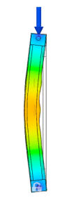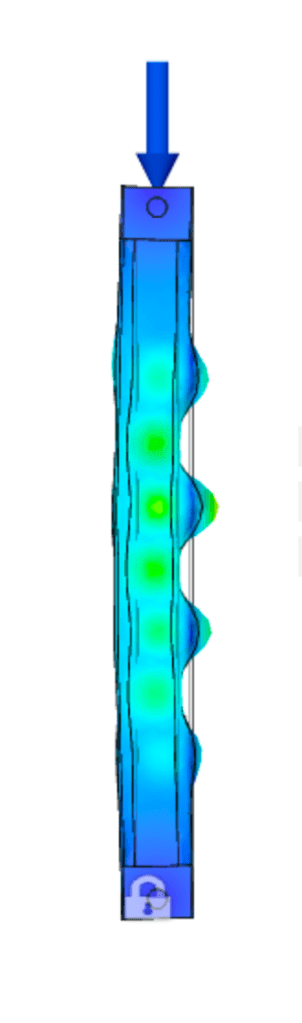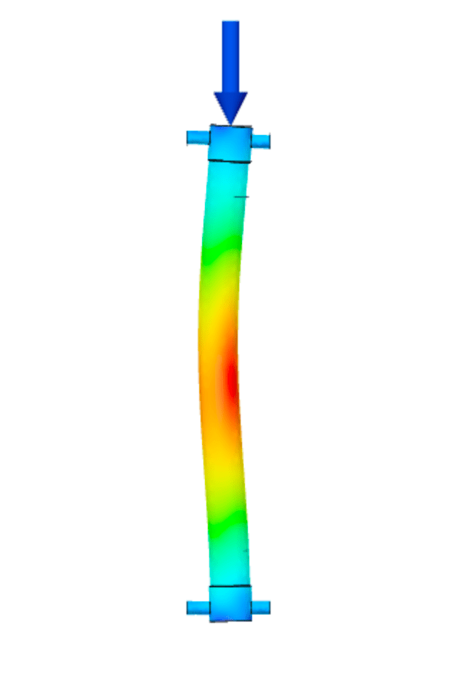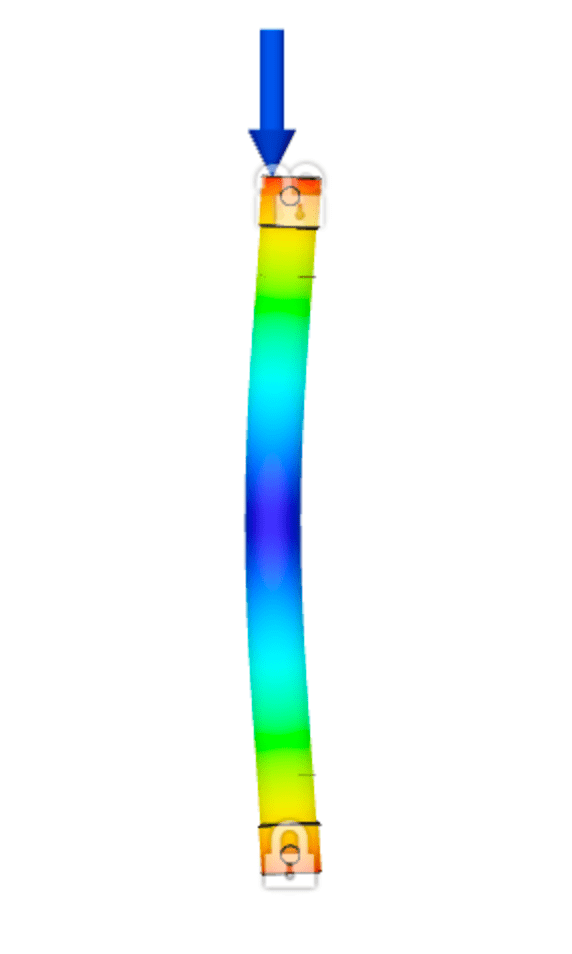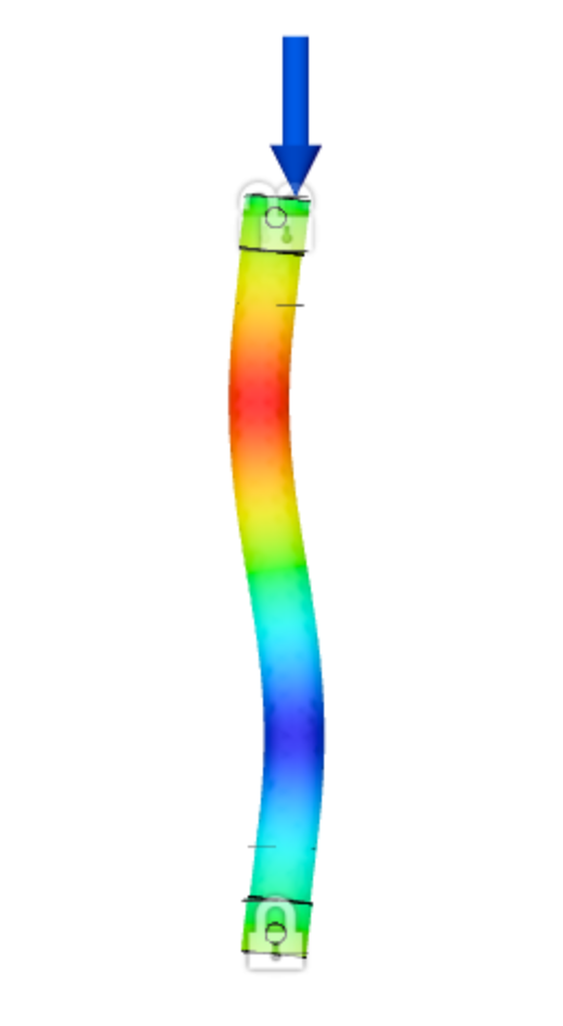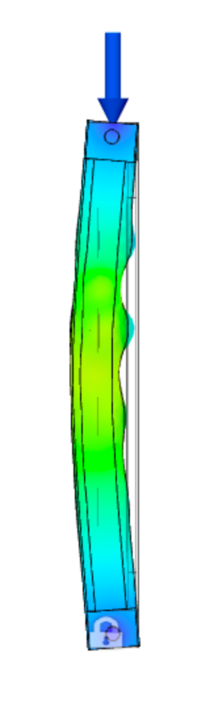 Performing basic buckling simulations in Autodesk Fusion 360 is fairly simple, and after some thought about the end conditions in the physical test setup, it was possible to establish similar conditions to the simulation. However, for future simulations it would be useful to establish end conditions using a specific ‘Pin’ feature which would truly treat the top and bottom connections as pinned rather than bonded. In addition, performing basic static tests on complex models is a recommended step in characterizing the behavior of a unique geometry. Complete this step particularly if the model configuration prevents easy intuition of the deformed shape.