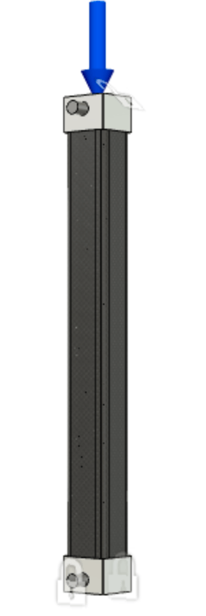 I modeled the cylindrical and square tube-and-lug assemblies with identical materials that are realistic to the compression testing described below. Specifically, the lug material is modeled with properties of 6061 Aluminum, the connecting pins are modeled with generic alloy steel, and the tubes are both modeled with twill CRFP materials according to the specifications listed on McMaster Carr’s website.