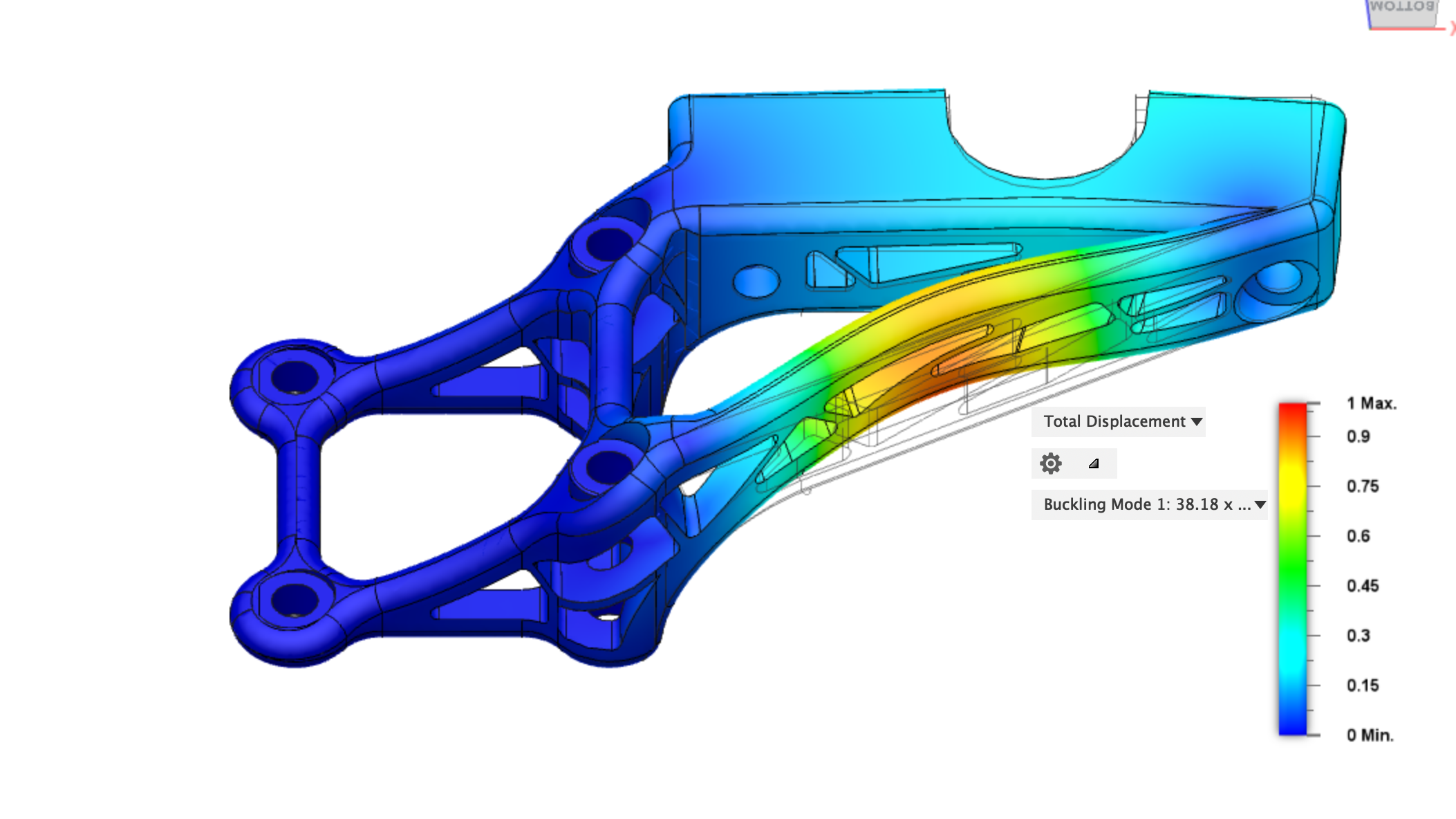 The diagonal truss clearly suffers the greatest deflection with the lowest factor of safety. For this reason I edited the component design to include a supporting beam which significantly reduce the bending stress in the diagonal beam: