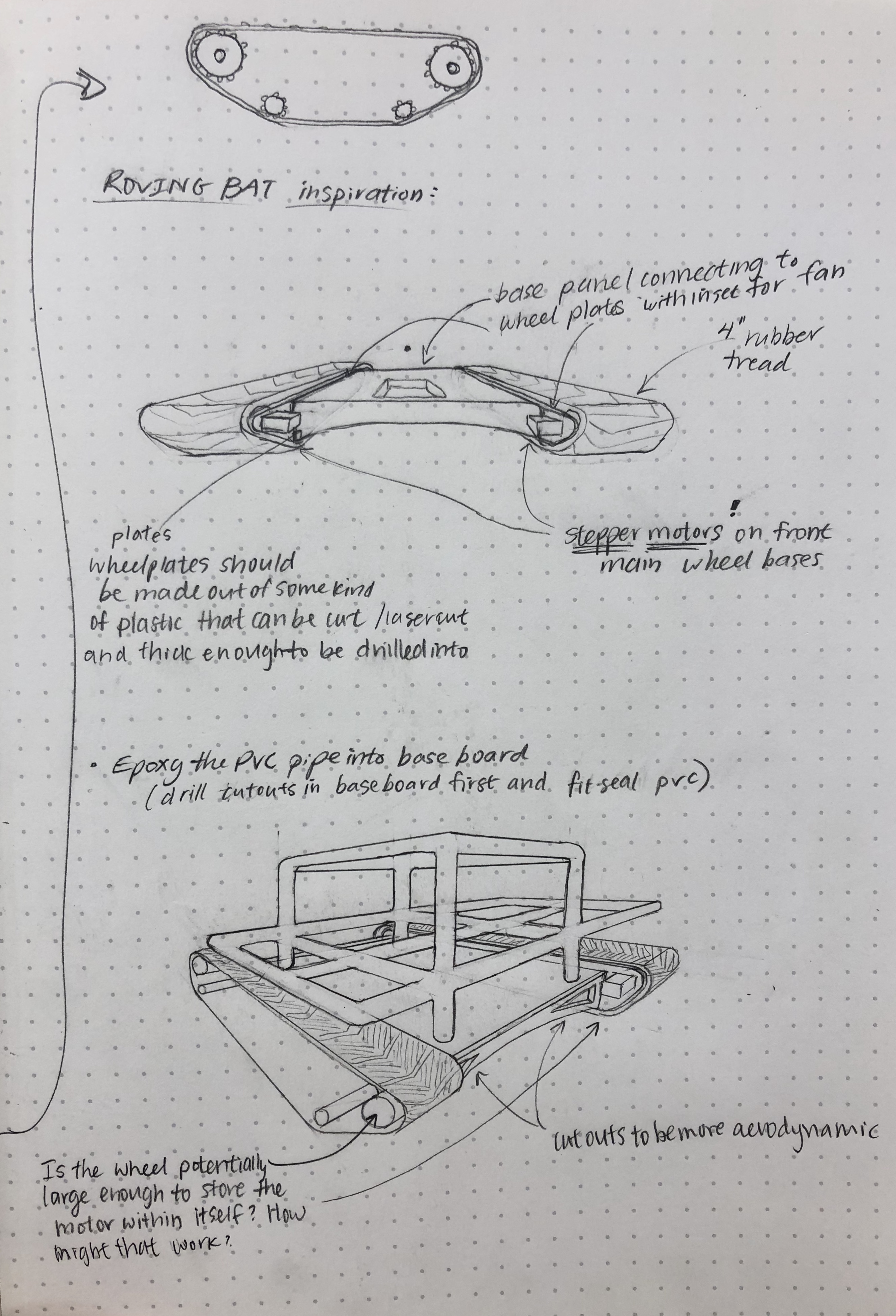 Below are some of my personal ideas for the frame, tread and wheel design, and potential arm design. I thoroughly enjoy the process of sketching and draw from my experience as an artist to create such sketches.