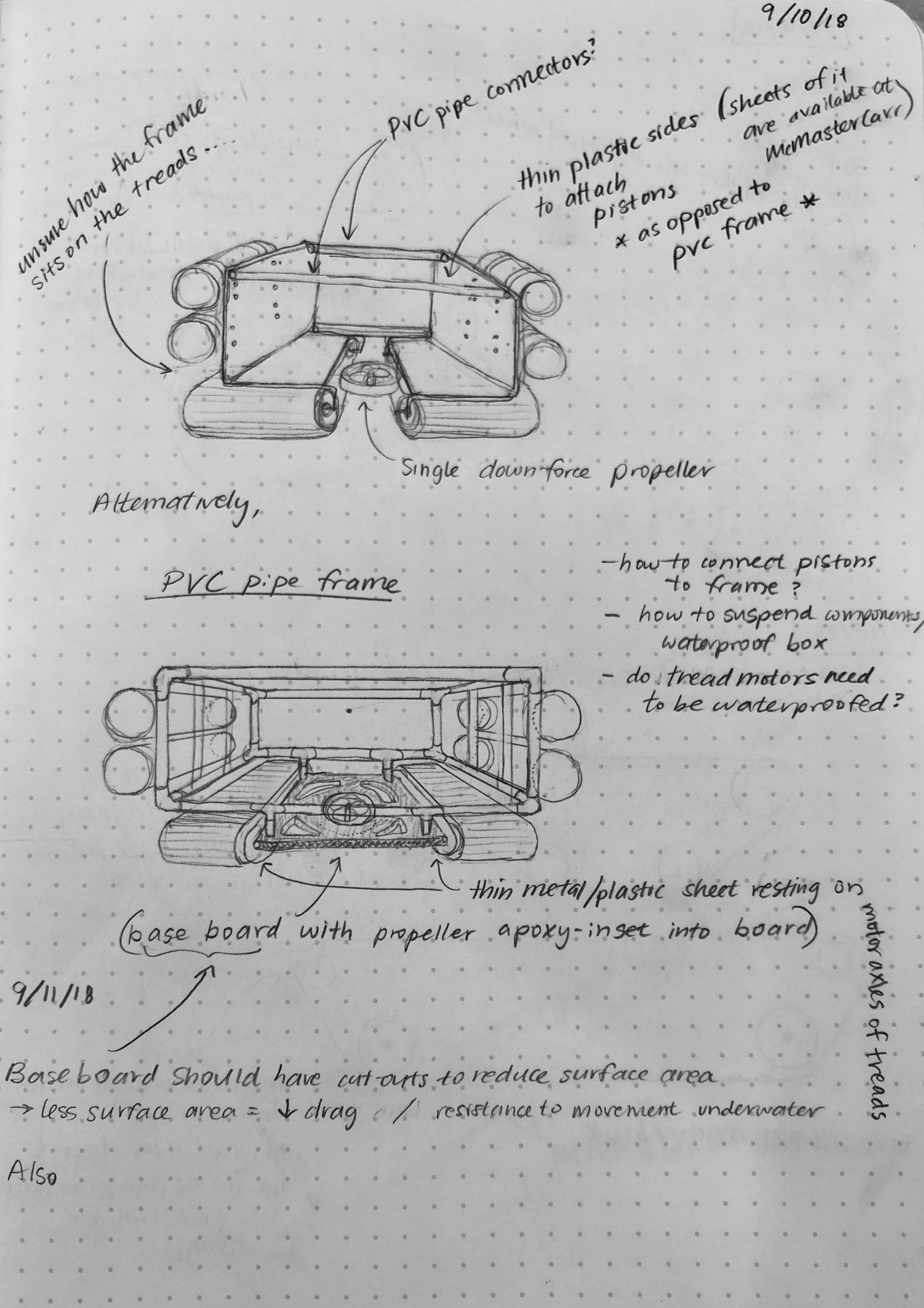 Some of our initial group-meeting ideas, specifically regarding buoy and frame design: