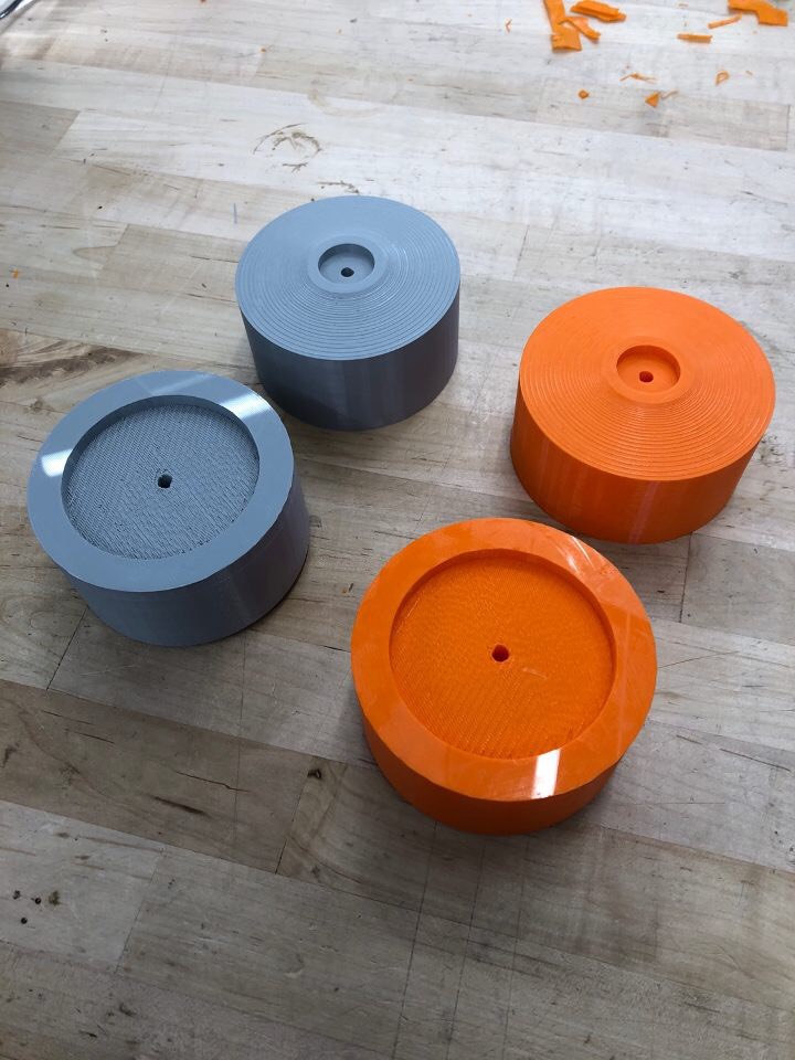 I sketched, modeled and 3D printed several wheels to accommodate the new design, which had two front wheels and one free wheel in the center back.