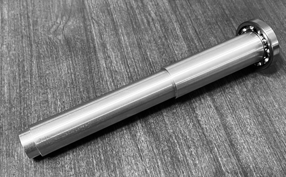 As part of my senior design course, we were challenged in groups of six to design and manufacture a shaft to include two press-fit bearings and a tensioning belt. As I am finding more often in my senior courses, I naturally took a leadership role in the design discussion. I assumed responsibility for validating moment calculations and dimensions, deciding press-fit and locational fit tolerances, and effectively communicating dimensions for drawing files. I also volunteered to calculate bearing pressure and assembly pressure to ensure that the bearing dimensions allow smooth bearing function and prevent the shortening of bearing life. Given my background experience in CNC manufacturing, I also took up the manufacturing task and quickly and accurately machined the aluminum shaft on a Babin CNC Lathe by myself. The final dimensions were accurate within 10 thousands and the press-fit dimensions after bearing assembly allowed smooth rotation of the bearing.